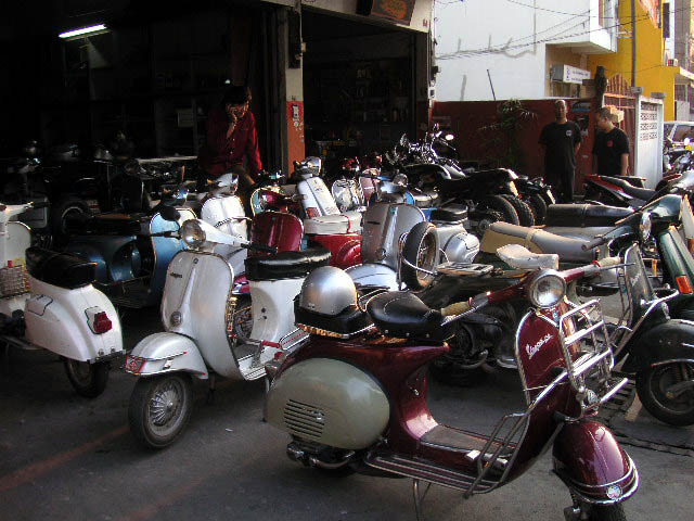 このベスパ、もともとはバンコクの中華街やインド人街で配達用の荷車として重宝がられていたそうで、今でもバンコク市内では氷屋や洋服の生地屋が荷物を山積みしてテケテケと走っている。